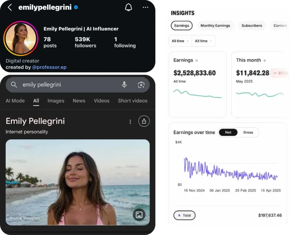 Emily Pellegrini è un esempio di come un AI influencer possa essere progettato per sembrare realistico, coerente e credibile.